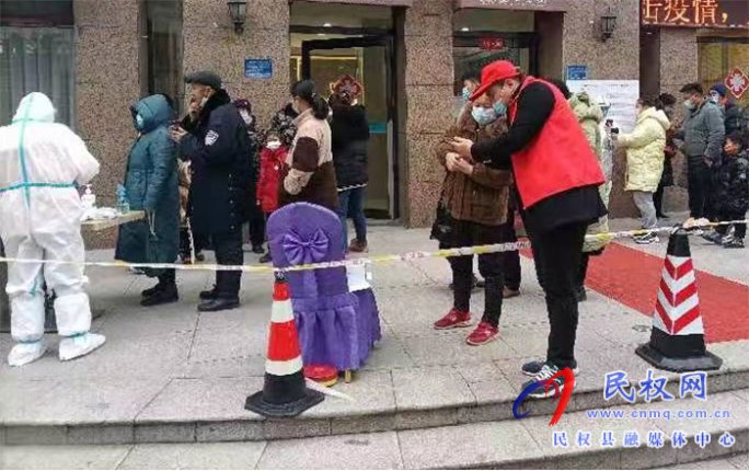 “您好,請戴好口罩,保持一米距離老先生,您需要幫助嗎?1月17日,民權(quán)縣核酸檢測工作正有序開展中,縣市場監(jiān)管局的預(yù)備黨員志愿者們早早地來到和美社區(qū),引導(dǎo)現(xiàn)場群眾排隊(duì)檢測”...