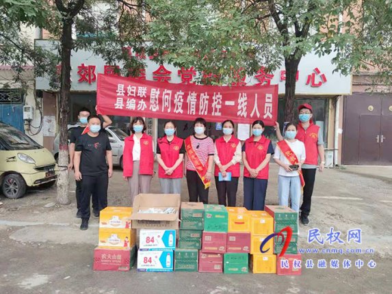 “8月13日上午,縣委編辦、婦聯(lián)領(lǐng)導(dǎo)班子及志愿者一行對(duì)東郊居委會(huì)疫情防控卡點(diǎn)的一線(xiàn)工作人員進(jìn)行慰問(wèn),并送去了口罩、消毒液等疫情防護(hù)用品和方便面、面包、礦泉水等生活保障用”...