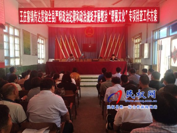 “9月7日,王莊寨鎮(zhèn)召開全體干部和駐村第一書記(工作隊長)會議,傳達貫徹《全縣開展違反中央八項規(guī)定精神問題專項整治工作方案》和《全縣嚴明政治紀律和政治規(guī)矩開展政治幫圈”...