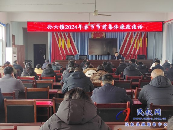 “春節(jié)將至,為進一步嚴明紀律規(guī)矩,以嚴的基調(diào)強化正風(fēng)肅紀,風(fēng)清氣正過廉節(jié),近日,孫六鎮(zhèn)召開2024年春節(jié)節(jié)前集體廉政談話會議,以增強全鎮(zhèn)黨員干部廉潔過節(jié)意識和拒腐防變能力”...